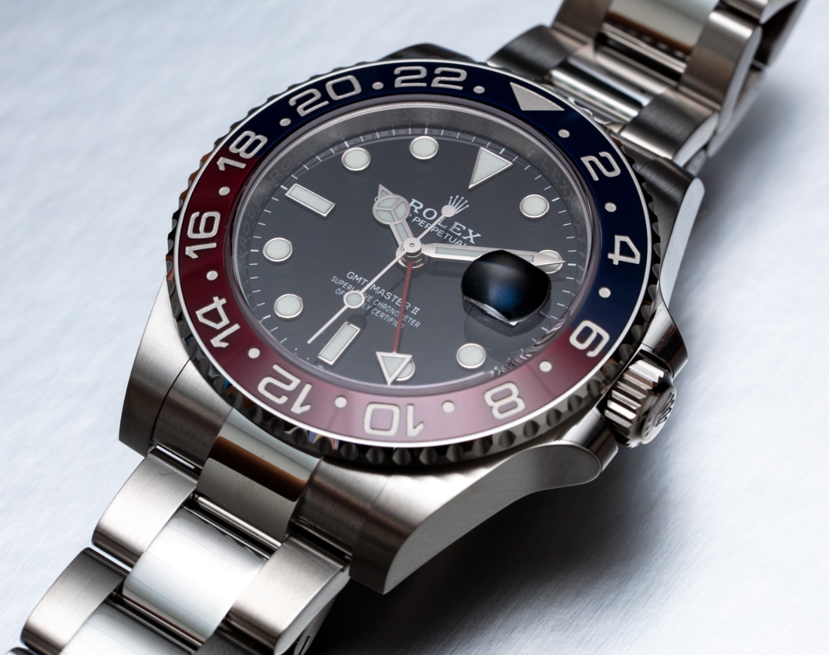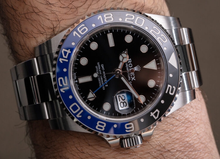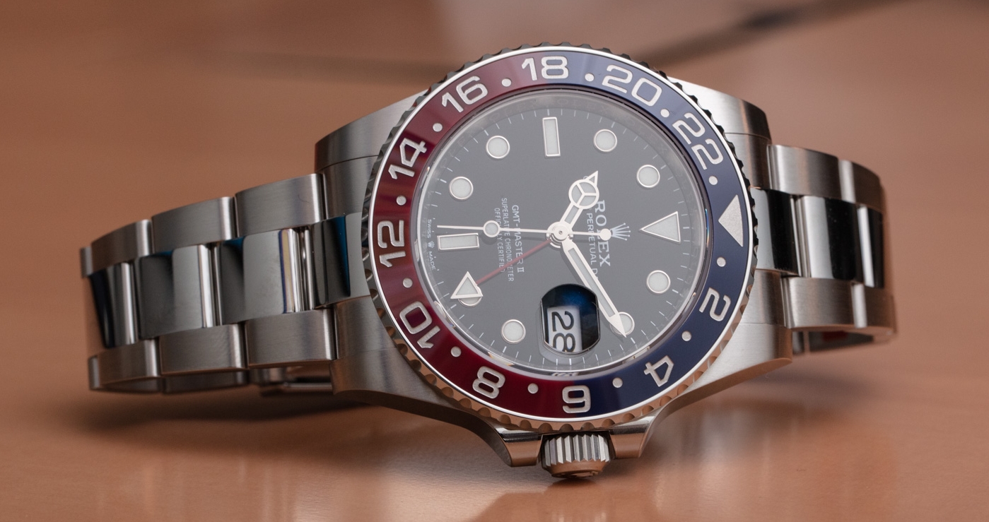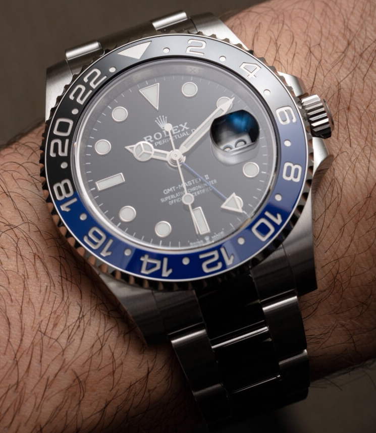 A key feature of many GMT-Masters was often a two-tone bezel whose differing colors corresponded to AM and PM time (not precisely, but you get the idea). This was meant to help wearers visually reference the day/night cycle more effectively, but it was also a place for Rolex to add splashes of color. Black and blue, and blue and red are just two of various colors mixtures that GMT-Master II bezels have had over the years. And Rolex could quite possibly add more color flavor in the future. What brought these two-tone GMT bezels into the modern era was producing them out of ceramic. Rolex was heralded as a pioneer when, in 2013, it released the reference 116710BLNR GMT-Master II (“Batman,” as enthusiasts later coined it) because it was the first time a two-tone ceramic bezel was used on a commercial watch (until then, ceramic came in one color, but Rolex developed a technique to create a portion of the ceramic to be a different color (the chemistry and pigment is different on each half) through the complex baking process that create the ceramic material.